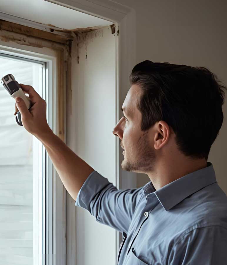 Our technicians conduct systematic visual inspection of affected windows, exterior caulking, flashing, weatherstripping, and surrounding siding or stucco. We check the roof conditions and gutter function above the window. Preliminary moisture scanning with meters identifies areas with elevated readings that require focused investigation.